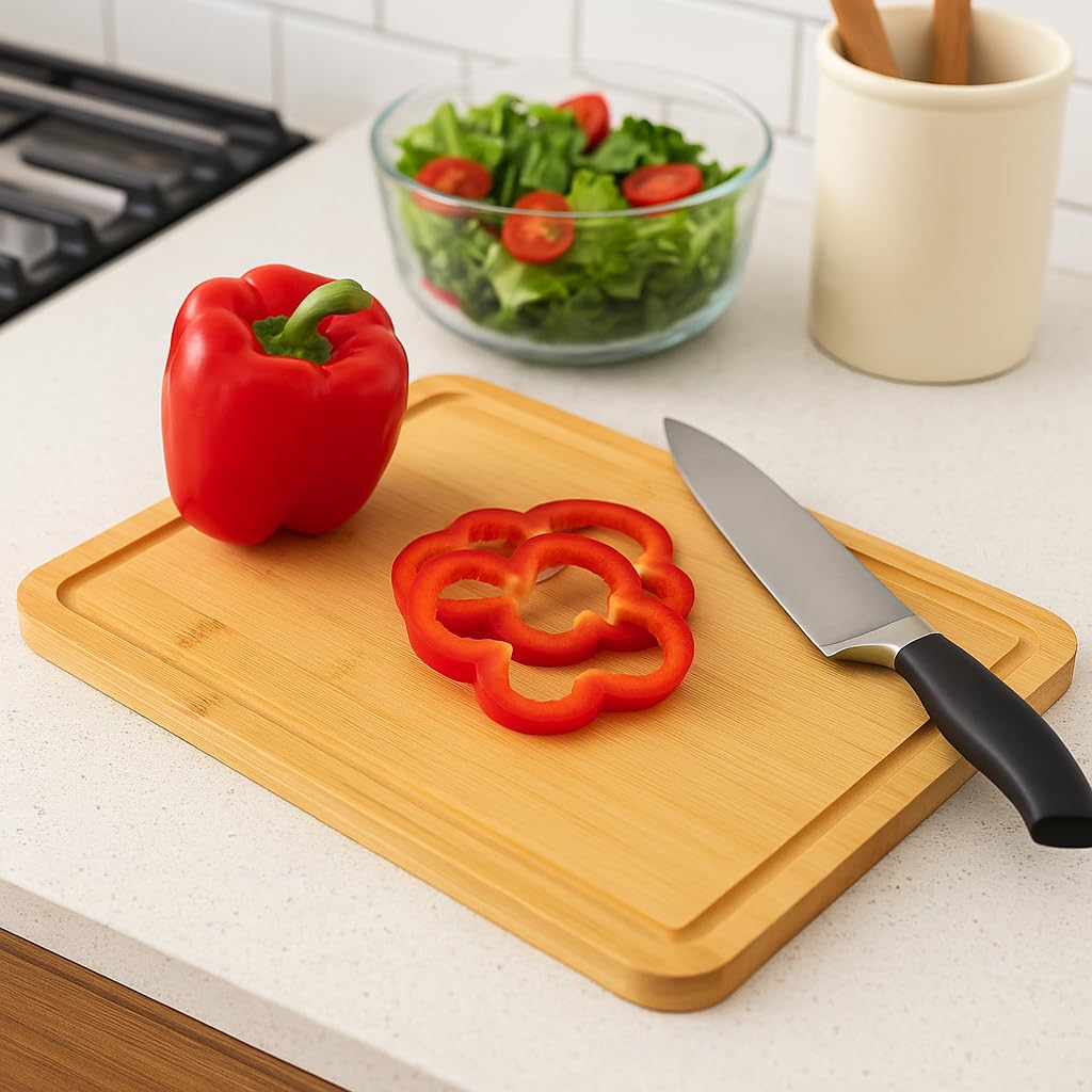 - Premium Bamboo Construction – Crafted from 100% natural bamboo, this cutting board provides a sturdy, eco-friendly surface for chopping, slicing, and serving.