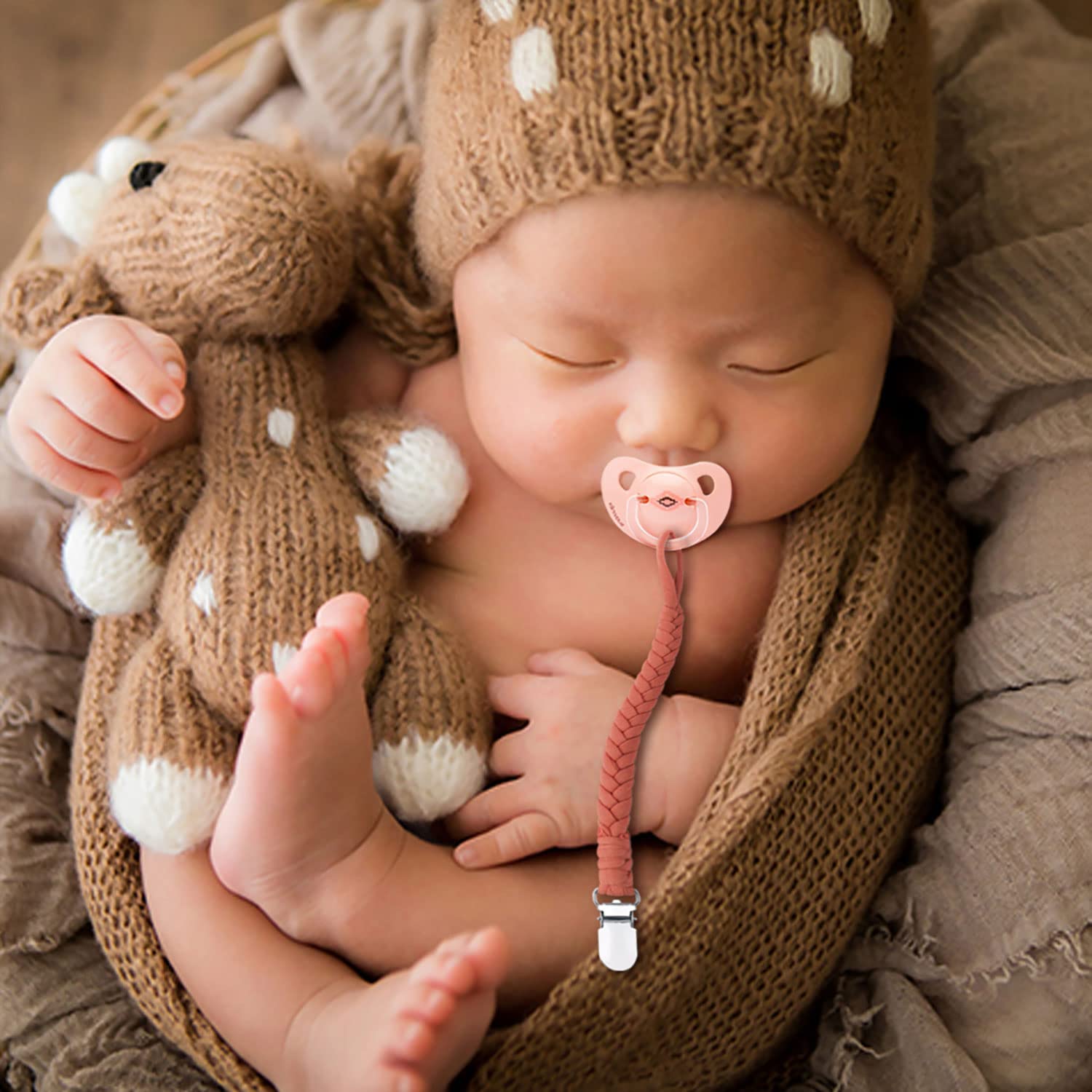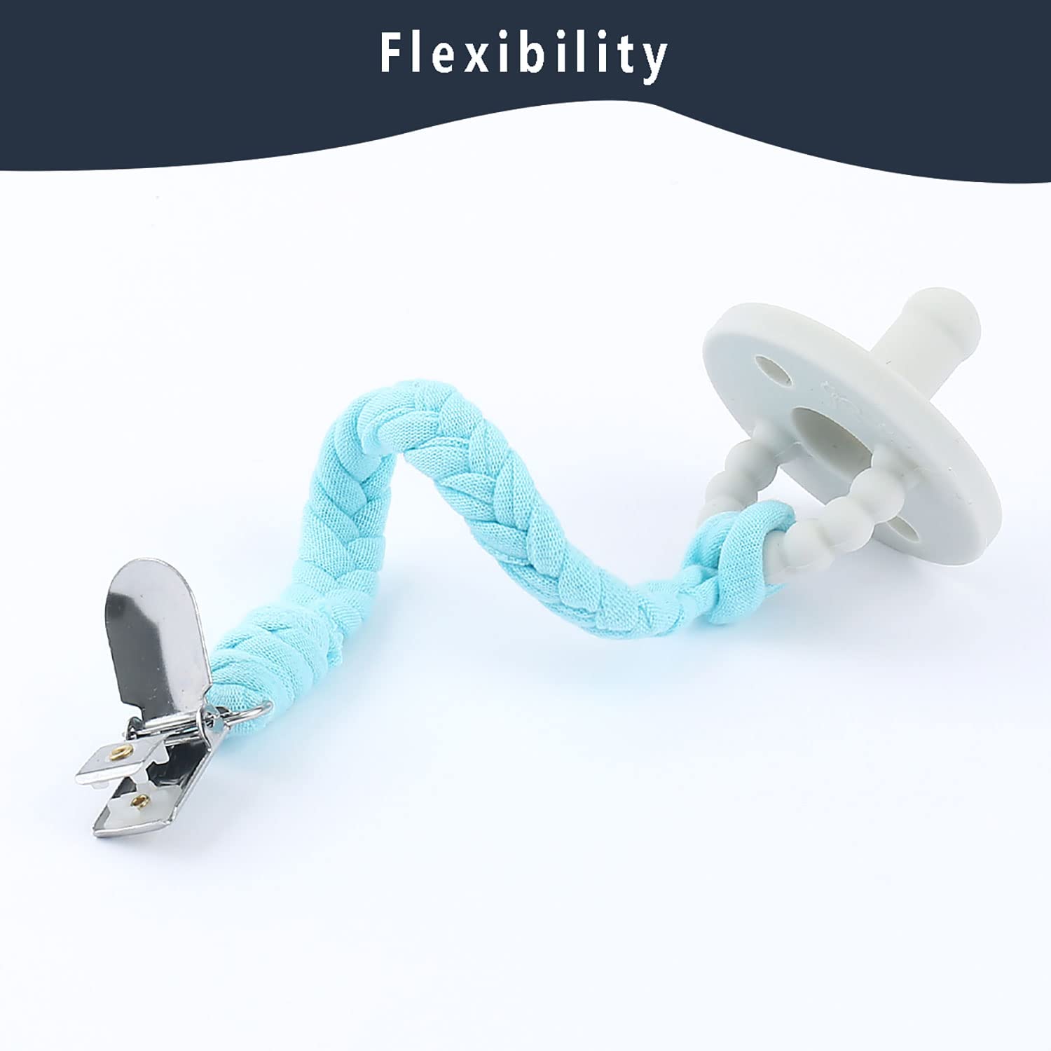 Pacifier Clips for Baby Boy and Girls, Handmade Braided Pacifier Holder, Baby Pacifiers Clips Leash Cotton Smoother Binky Clips Newborn Fits All