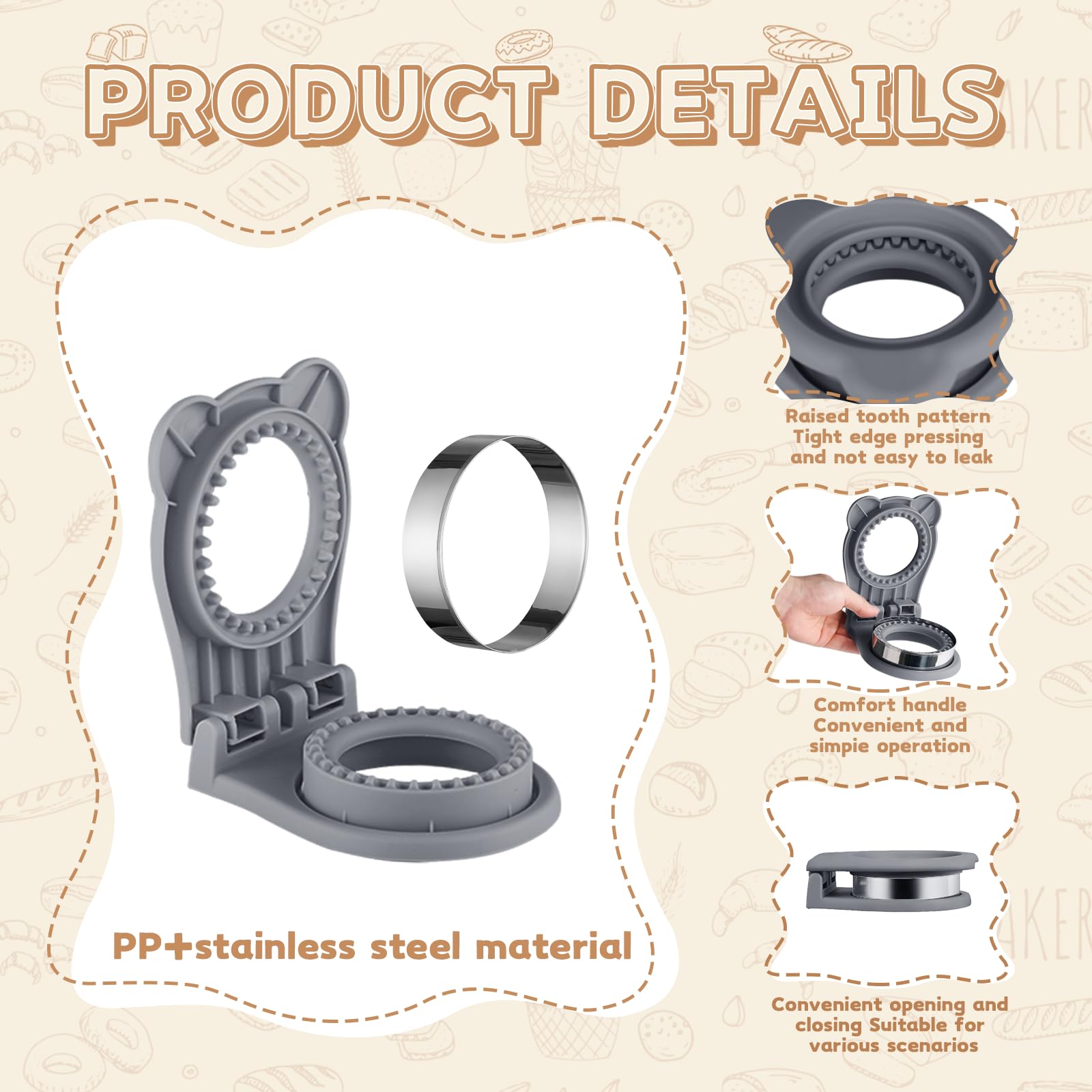 Sandwich Cutter, Maker for Kids Lunch - 3.7 Inch Circle Shape Sandwich Cutter and Sealer, Breakfast & Lunchboxes (Gray)